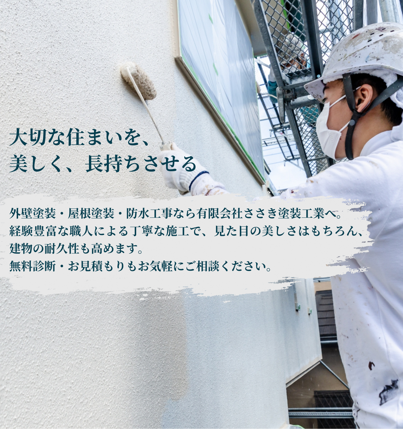 外壁・屋根・防水に関するお悩みは、ささき塗装工業にお任せください。